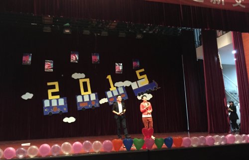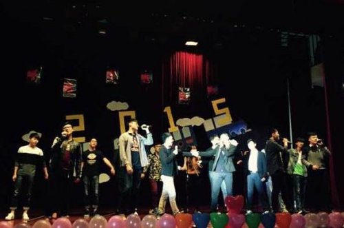 Tok》把现场气氛瞬间点燃。接着,三段视视频展示了我院优秀学子的风采。岁月如歌,人生如戏,歌曲串烧,歌曲《梦一场》、舞台剧《不斩来使》,以及双簧《说学逗唱》更是为晚会增添了许多的趣味。由柴艳老师演唱的《别找我麻烦》,陈鹏老师演唱的《谢谢你的爱》,顾雷雷老师演唱的《路灯下的小姑娘》三首歌直接掀起整场晚会的高潮,使全场沸腾起来,同学们纷纷上台献花拥抱,把“莘莘学子意,浓浓师生情”展现的淋漓尽致。《月亮代表我的心》一支口琴,一个话筒,便让全场观众都沉浸在这唯美的梦境中。当现场还陶醉在梦境中时,14级的学长又用时尚动感的舞步,帅气的托马斯把现场的气氛再次点燃。