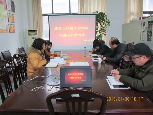 1月6日上午,建筑与环境工程学院党总支召开“三严三实”专题民主生活会,副院长王远东出席会议,建筑与环境工程学院党总支全体成员参加了此次会议,陈炜副院长列席会议。会议由建筑与环境工程学院汤宇红书记主持。 会前,建工学院党总支认真安排部署,扎实做好方案制定、征求意见、谈心谈话等各项基础性准备工作,为召开专题民主生活会奠定了坚实的组织基础和思想基础。会上,汤宇红同志代表建工学院领导班子就二级学院在“三严三实”等方面存在的问题进行了对照检查并表示将继续增强开拓创新意识,建立长效机制,探索二级学院稳定长效发展方法。随后汤书记紧扣“三严三实”主题,认真对照党规党纪,紧密联系实际,仔细查摆个人在思想、工作、作风等方面存在的“不严不实”问题,深刻剖析问题产生的根源,认真开展自我批评,并寻根究源提出改进措施。与会同志对汤宇红同志提出批评和建议,该同志表示会根据同志们提出的意见建议,进一步深化理论学习,提高综合素质;进一步务实创新,增强工作实效。党总支其他成员逐一深刻进行自我剖析,对自身存在的不严不实情况进行一一查摆,成员之间也开展了批评与自我批评,民主生活会气氛热烈、态度诚恳。 王远东副院长对会议进行了点评。他认为此次民主生活会是一次富有成效的会议,党总支成员敞开心扉,拿起批评和自我批评的武器,深查细剖思想问题、意识问题,自我批评严肃深刻、触及灵魂;相互批评坦诚相见、有的放矢,达到了“团结-批评-团结”的目的。他对建工学院提出几点希望:一要加强沟通,为改革保驾护航;二要明确目标,重视优势学科;三要关心机制、促进发展,把专题教育融入经常性学习教育,推动践行“三严三实”制度化、常态化、长效化,真正达到思想、作风、党性上“补钙”和“加油”的效果。 民主生活会现场 撰稿:孙静