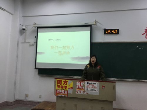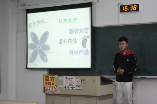 为进一步加强学风建设,不断激发学生学习的积极性和主动性,培养出更多高水平、高素质人才,我院近期组织2018级各班召开了“学风建设”主题教育班会,本次班会的目的在于让学生建立良好的学风,充分调动同学的学习积极性。 学风是学生思想道德品质、学习精神与综合素质的重要体现,是学生成长的基础和前提。学风建设亦是校风建设的重要内容。此次“学风建设”主题班会的开展,使同学们的学习热情与思想觉悟有了进一步的提高,同时明确了自身未来的发展方向,起到了加强班级学风建设和创建和谐校园的良好效果。 班主任在学风建设主题班会上讲话