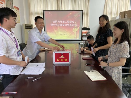 按照学校关于党支部换届选举工作的统一部署,6月18日上午,建筑与环境工程学院学生党支部在教5203召开了全体党员大会,进行了换届选举,学生党本支部全体党员参加了本次会议,会议由郑波主持,党总支书记赵宏宾出席会议。 顾雷雷同志代表上一届支委做工作汇报,从近五年基层党组织建设、支部组织生活开展、党员学习教育、创新活动形式等方面做了汇报,报告全面总结了上一届支部工作取得的成绩,分析了存在的问题,明确了今后的奋斗目标和努力方向。 会议按照议程依次审议通过了选举办法、监票人、计票人名单和新一届党支部委员会候选人名单,采用无记名投票的方式差额选举产生了新一届建筑与环境工程学院学生党支部委员会。 随后,新一届党支部委员会召开了第一次全体会议,等额选举顾雷雷同志为学生党支部书记。 顾雷雷表示新一届支委会将以习近平新时代中国特色社会主义思想为指导,团结带领支部全体党员攻坚克难、锐意进取,切实发挥支部的战斗堡垒作用和党员先锋模范作用。 赵宏宾代表学院党总支讲话,希望全体党员能够紧密团结在以习近平总书记为核心的党中央周围,增强“四个意识”、坚定“四个自信”、做到“两个维护”,在学校党委的正确领导下,坚持立德树人根本任务,坚持做好党员的教育管理和服务工作,引领建环学生顺利成长成才。 | ||||