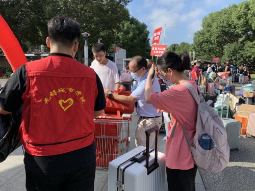 10月10日阳光明媚,是无锡城市职业技术学院喜迎2021级新生报到的第一天,来自全国各地的萌新们,满怀着对大学生活的美好憧憬,载着亲人们打包的一份“关爱与呵护”,顺利达到了学校北校区的北门。为积极配合学校疫情防控工作,并为报到的新生与家长提供更多的服务,学院党总支提前部署,号召党员教师积极参加新生报到的志愿服务工作。校门外,学院的党员教师,及时帮助新生们卸下车上的各种行李,为家长们增添一份安心。 校门内,郁宝华书记在组织安排好党员教师报到指引、登记服务等志愿工作外,带头帮助新生提起沉重的行李,领着他们去学院报到处登记报到,减少了因推车返途、人手不够,让新生们在烈日下的等候时间。其他党员教师志愿者也踊跃投入,纷纷帮助学生搬运行李,为新生们增添了一份舒心。 一天的志愿服务工作结束后,望着那一抹斜阳,党员志愿者们虽然已满身疲惫、衣衫湿透,但他们的内心是甜滋滋的。因为,他们以“为学生办实事”为己任,为新生送出了一份真诚贴心的服务,也送出了一声声亲切的问候。(文:张军;图:顾雷雷、张军;审核:郁宝华) | ||||