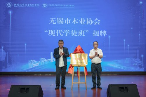 此次活动中,建环学院与无锡市木业协会成立了“木业协会现代学徒班”,单鲲鹏与郁宝荣共同为学徒班揭牌;与中国铁建无锡工程科技发展有限公司、江苏恒米数字科技有限公司、无锡位家家居科技有限公司三家企业建立校外实训基地,与江苏恒米数字科技有限公司、无锡位家家居科技有限公司签署捐赠协议。