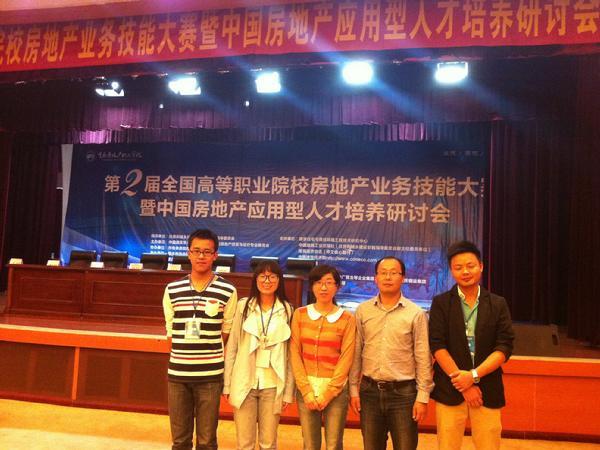 10月24日-25日,第二届全国高职房地产业务技能大赛在重庆举行,来自全国30多所院校的200多名师生参加了本次大赛。经过激烈角逐,由蔡倩、郭晟老师指导,刘婷、倪栋、李享三位同学组成的无锡城市职业技术学院代表队以优异成绩获得大赛二等奖。