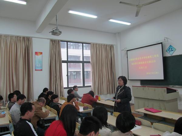 10月29日下午,建筑工程系党的群众路线教育实践活动总结大会在教5304召开。全系教职工参加了此次会议,会议由建工系党总支书记汤宇红同志主持。汤宇红书记首先宣读了建筑工程系党的群众路线教育实践活动总结,回顾了系教育实践活动的开展情况,并对如何落实活动要求,如何巩固活动成果做出了部署。自活动开展以来,建工系以“坚持群众路线,转变工作作风,凝聚师生力量,促进系部发展”为主题,以反对“四风”、服务师生为重点,认真抓好教育实践活动三个环节的工作。活动准备扎实、开展诚恳、总结务实,提高了系部领导班子及成员宗旨意识,切实改进了工作作风,密切了党群、干群、师生关系,有力促进了系部各项事业全面协调可持续发展。汤书记表示,系部将继续严肃思想认识,巩固教育实践活动成果;加强干部队伍建设,进一步提高工作水平,切实把整改措施落到实处. 通过教育实践活动,系部广大党员干部经历了思想的洗礼,群众观点得到明显提升,宗旨意识得到了明显加强。 建筑工程系将继续做好教育实践活动收尾工作,并以此为契机,学习和吸收教育实践活动过程中取得的丰硕成果,进一步解决师生关注的焦点热点问题和系部事业发展中的重点难点问题,进一步加强制度建设和体制机制的完善,扎实推进建筑工程各项工作再上新台阶。