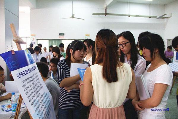 同学在向用人单位咨询公司情况 |